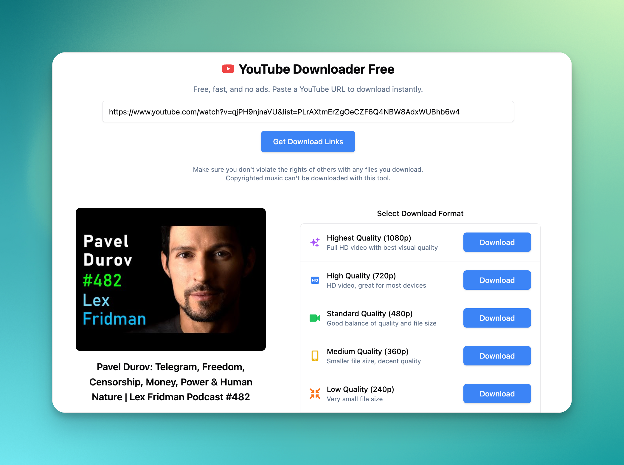 If you ever need to download a YouTube video, look no further. Our Free YouTube Downloader is simple & straightforward: