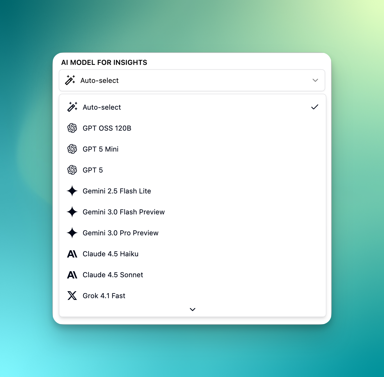 Insights generation now runs in the background with major reliability improvements. You'll see a loader while processing, and the AI model selector has moved to a cleaner popover dialog for easier switching between models.
