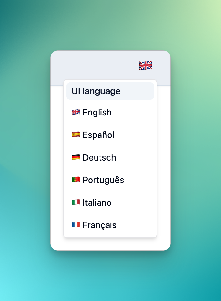 A new language switcher lets you change your interface language instantly, and your preference is remembered across sessions.