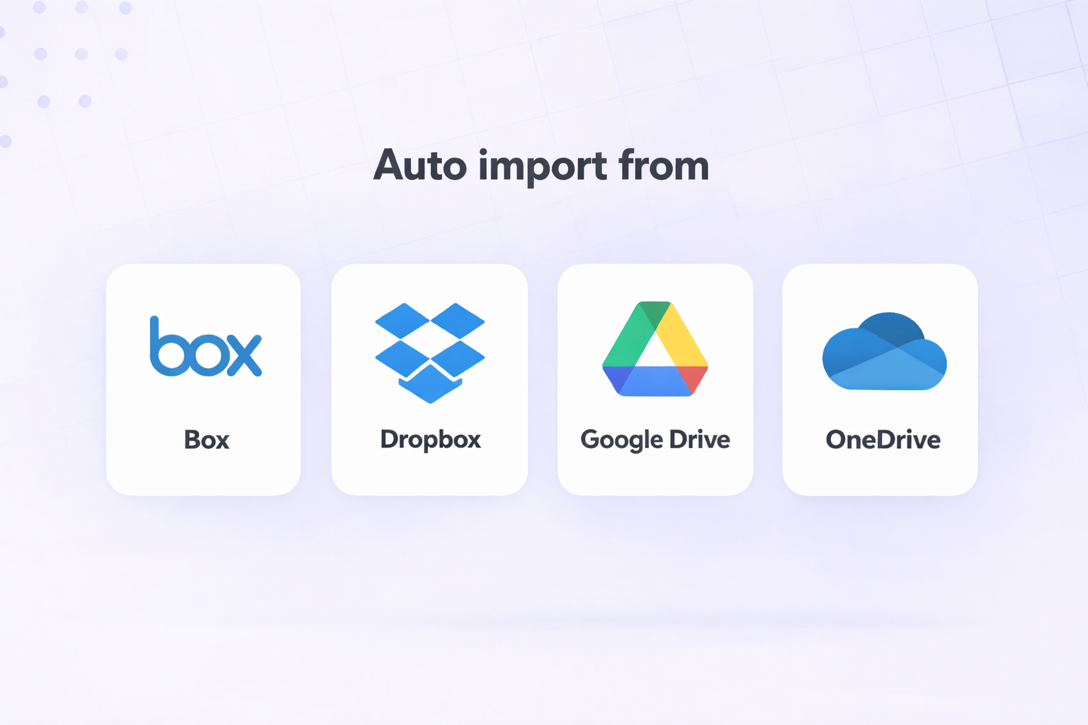 Auto-imports from Box, Google Drive, Dropbox & OneDrive
