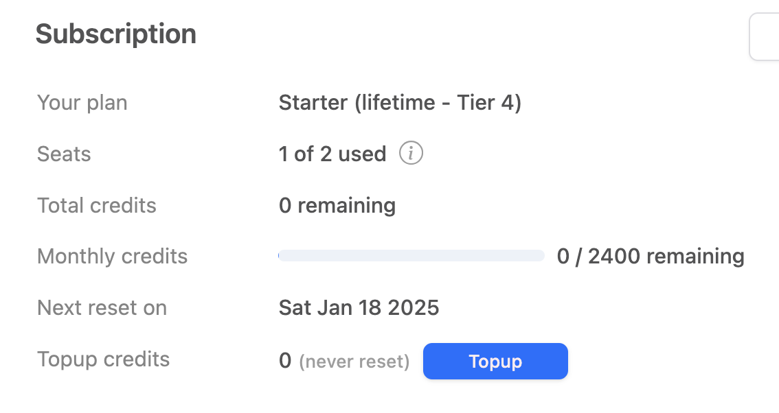 Hi, a fan of the tool here. Since the change to the new look&feel, I think is not that easy to see how many credit you’ve used/got left. Unsure if it’s just me because I’m coming from an old benninger plan.